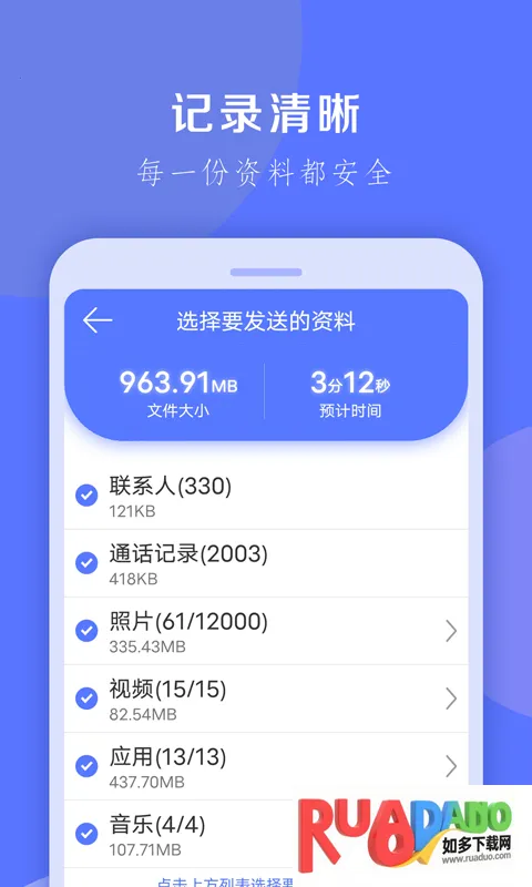 3. 安全助手:新旧手机加密无线传输,一对一直传不联网,保证隐私安全。