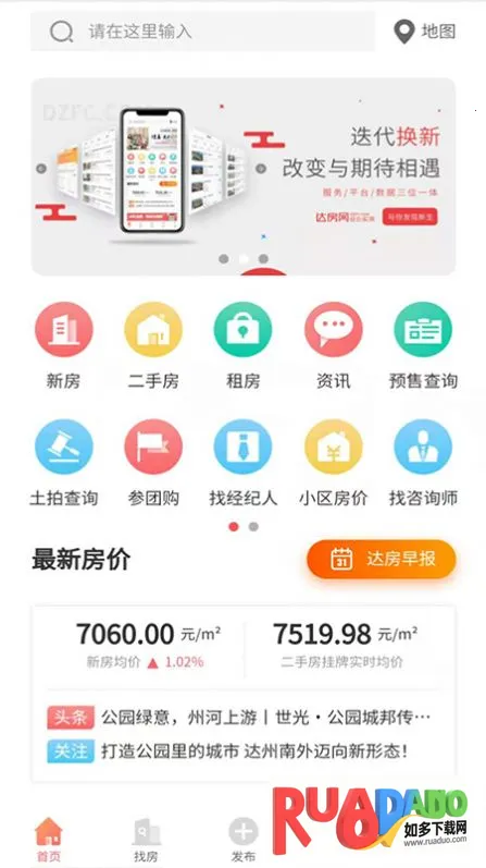 达房网是达州专业房产平台,提供新楼盘、房价查询等资讯,涵盖二手房、租房等服务。有大量真实房源,人工审核,功能丰富,如预定、收藏房源,还有小区房价、团购版块,助用户轻松找房买房。