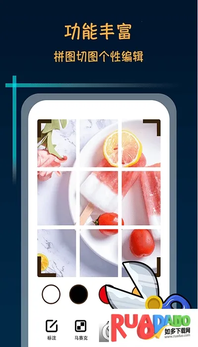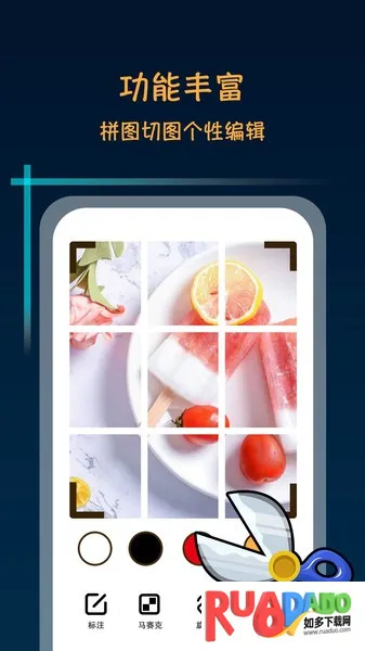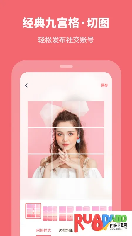 提供多种图片编辑工具,像九宫格剪图、线条拼图、经典宫廷网格裁剪等,3秒裁剪完成,满足社交发图需求。