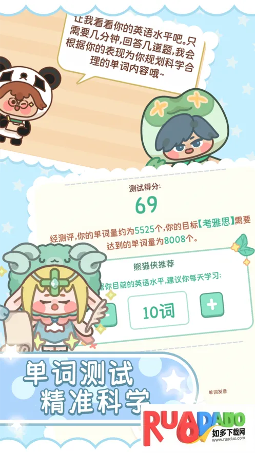 3. 提供测评、个性学习计划、趣味闯关等强大服务。
