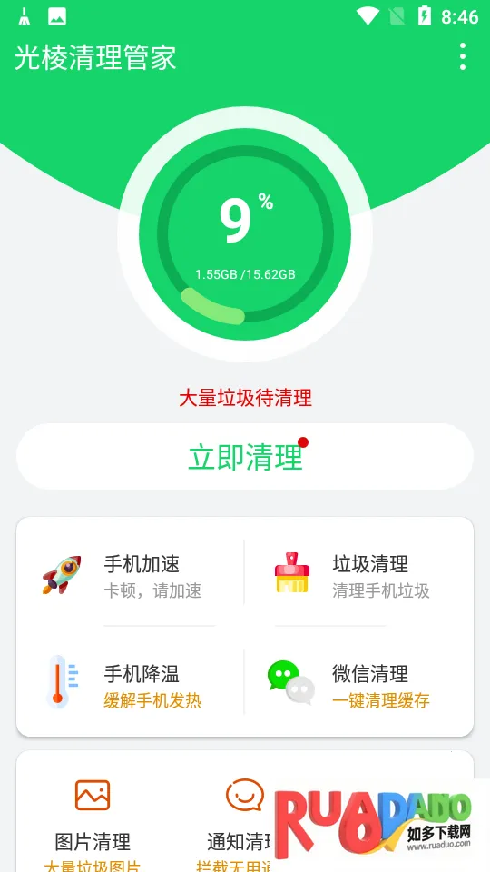 3. 优化适配:跟进用户反馈,解决了酷派等机型清理崩溃的问题。