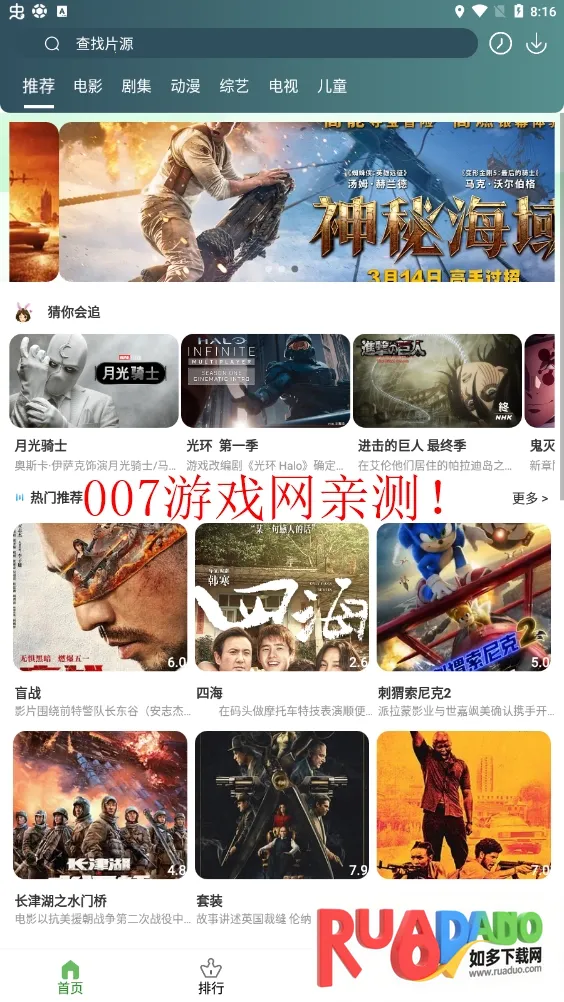3. 使用超便捷,操作简单,界面美观,有智能推荐搜索功能,能快速找到感兴趣影片,还可通过排行榜发现更多热门作品。
