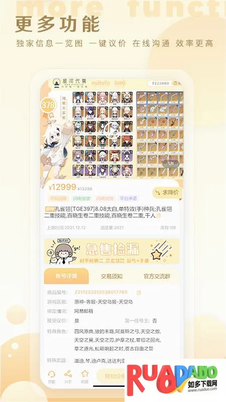 1. 支持寄售、回收、换号、代售等服务,操作便捷,一键上架。