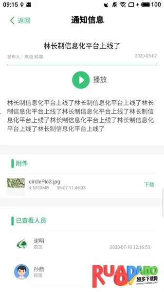 4. 提供消防新闻、消防知识、通知公告等常用功能,方便用户随时随地阅读,还能查看护林员野外巡护汇报的情况。