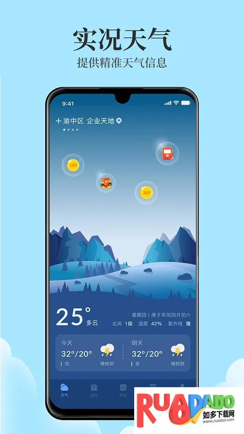 天气君是天气网推出的手持终端应用,含国内外多城市天气信息,预报准确全面。有24小时及未来十五天预报,能看气压湿度等,还提供穿衣等生活指数,功能丰富,是日常出行旅游必备。