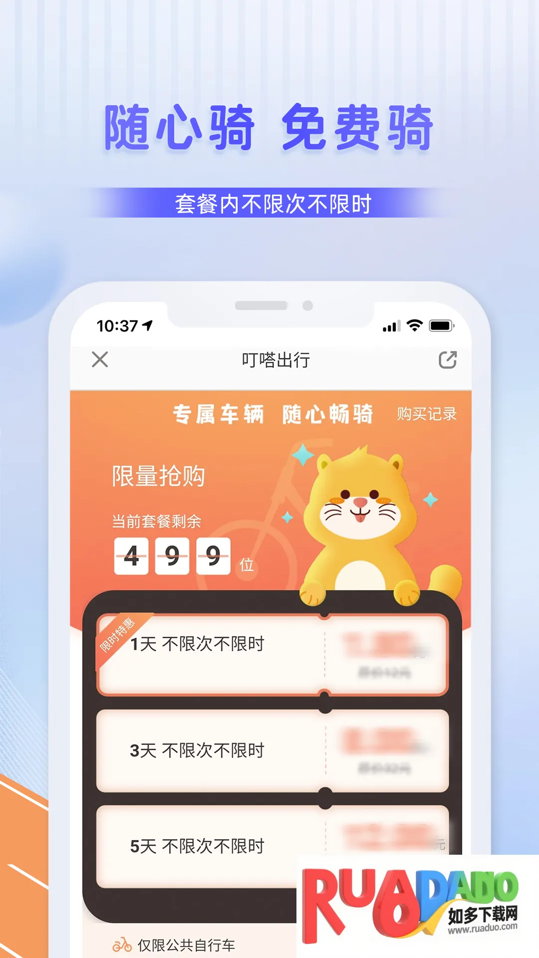 叮嗒出行是自行车租赁应用,能快速找附近公共自行车,扫码租用,支持无积分租赁,首小时免费,全国共享,界面简单方便,还有超值月卡等福利,不断更新优化性能与功能。