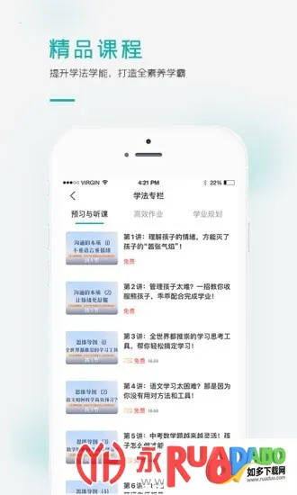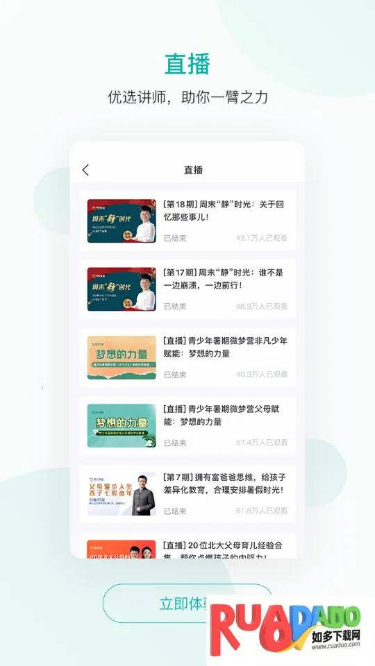 2. 课程涵盖精选书籍解读、音视频课程、训练营、直播课程等优质资源,提供以家庭教育为核心的一整套线上线下服务。
