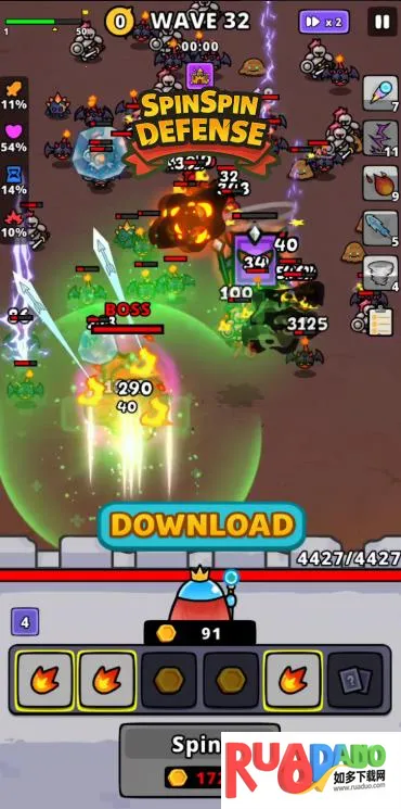 转转防御是一款创新手游,以史莱姆守护王国为背景,融合转盘随机抉择肉鸽元素与塔防阵地防御。玩家化身史莱姆之王,转动转盘选技能击败魔物,每局关卡布局和技能组合不同,在爽感与博弈中守护王国。
