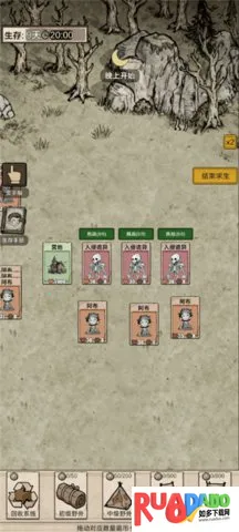 1. **昼夜循环系统**:构建白昼发育黑夜防守的核心节奏,白昼12分钟可执行采集探索制作培育等操作,12分钟倒计时结束后强制进入黑夜,未返回营地的玩家会暴露在诡潮中。