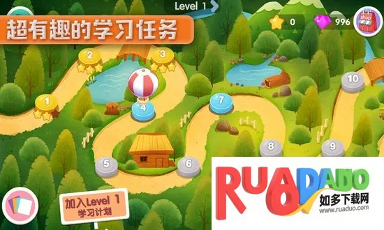 2. 软件包含12个生活化主题场景,每个场景下设多个互动关卡,分阶课程体系,从字母认知到日常对话应用,全面提升孩子英语能力。