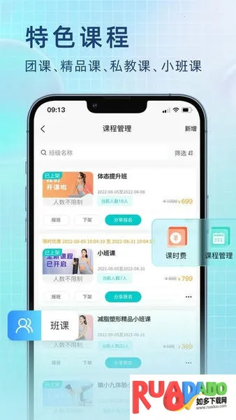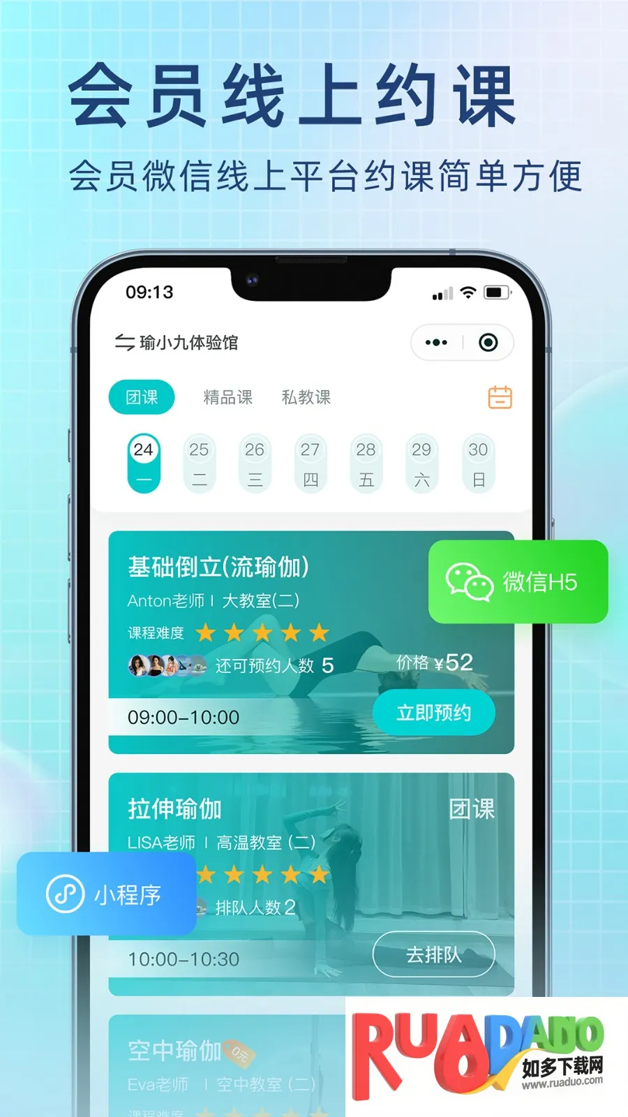 瑜小九是一款为用户提供在线瑜伽上课预约及健身馆会员管理服务的app。它功能丰富,涵盖约课、排课、运营数据分析等,支持多端使用,能助力打造专属场馆,提升管理效率,还不断更新修复问题。