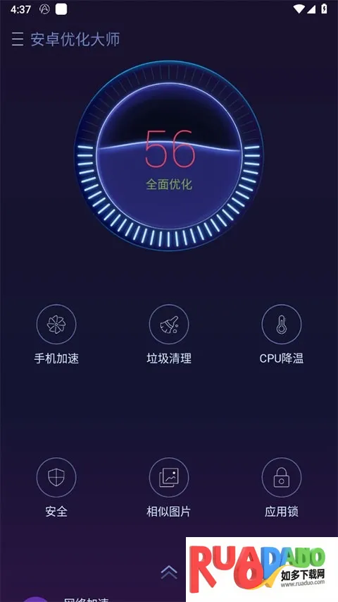 安卓优化大师是上海乡秀电子商务有限公司研发的手机优化工具,可一键优化清理,释放内存。有内存加速、垃圾清理、程序管理等功能,能全方位扫描清理垃圾,分类展示程序,还可卸载内置程序,提升手机性能。