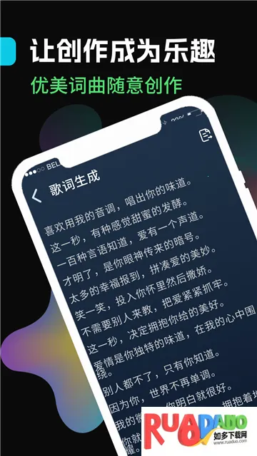 4. 可根据情绪基调和关键词生成歌词,或选择作曲风格如中国风、欧美风生成简单曲谱。