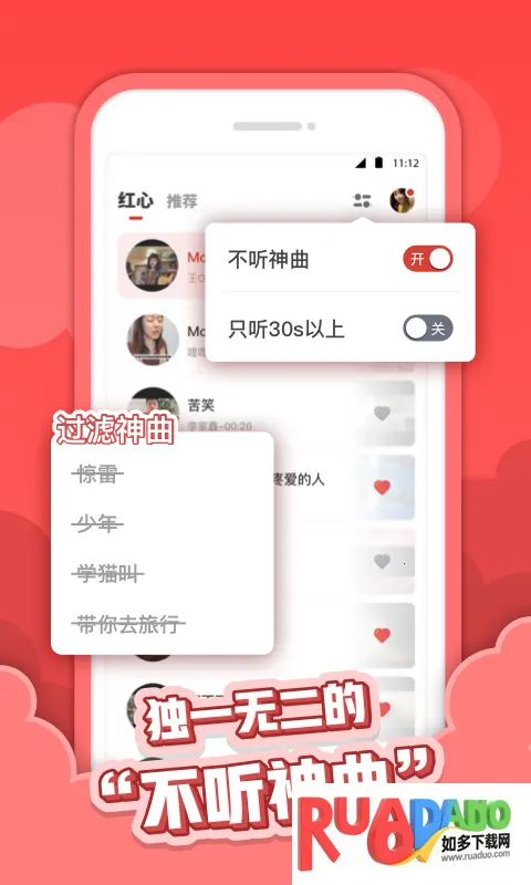 2. 能一键开启不听神曲模式,摆脱洗脑旋律,享受更舒适的听歌体验。