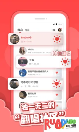 红心音乐是专注音乐翻唱的社区平台,功能丰富。有海量歌曲,支持翻唱录制分享,能与音乐人交流。还有智能评分、导入视频制MV等功能,可同步抖音点赞歌曲,屏蔽洗脑神曲,及时获歌手新作推送。