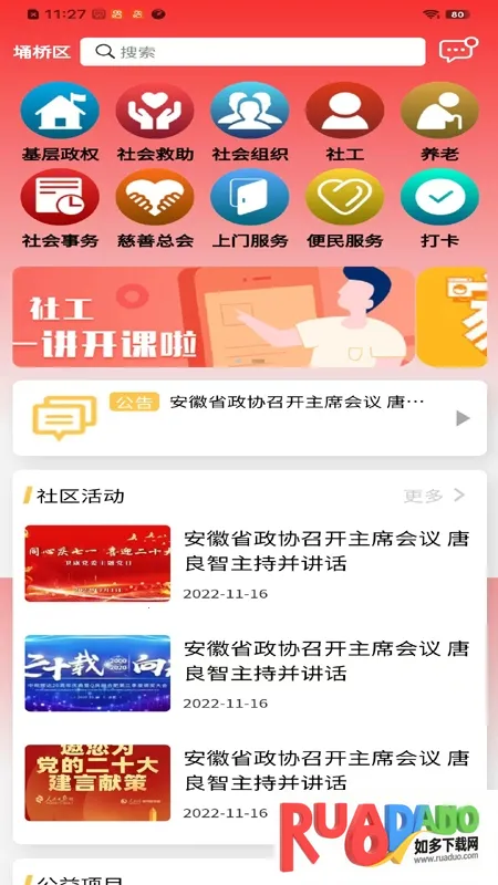 埇民通智慧社区是一款超棒的综合性便民服务软件。它能让你轻松了解社区公告,知晓社区动态变化。各种社区活动都在这里展示,报名参加,让生活更丰富多彩。还有超多上门服务,维修、安装、家政清洁等问题都能轻松解决。