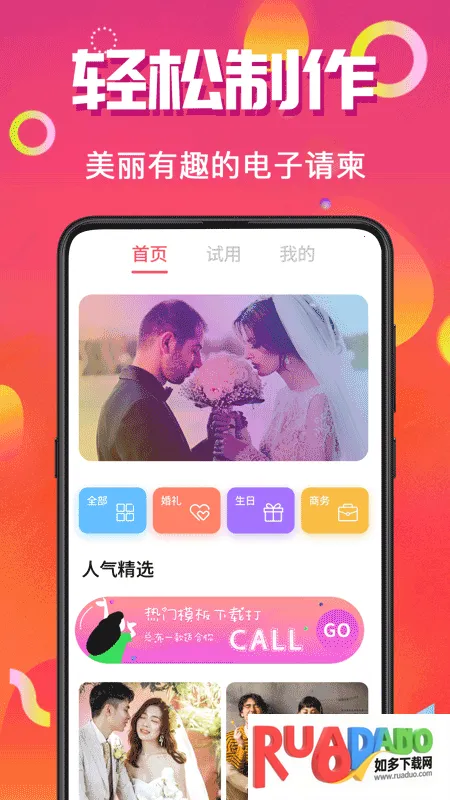 3. 模板精美操作简便:内置不同风格类型的请柬模板,结婚、生日、宝宝满月、老人祝寿等不同类型模板精美,风格多样,满足不同需求。简单易操作,动动手指即可完成电子请柬,省时省力。