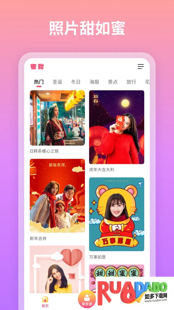 蜜甜修图拼图安卓版功能强大,有多种图像编辑功能,能后处理照片、加文本。提供海量滤镜,操作轻松,页面设计简单,功能类型丰富。可免费享多种滤镜,满足不同需求,还能快速调整细节,方便与朋友共享照片。
