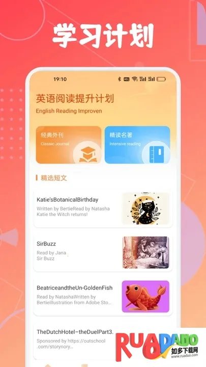 4、在阅读页面中提供经典外刊、精读名著,还有各种精选短文内容。