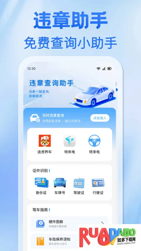 违章罚款标准查最新手机版是实用违章查询 app,能查违章代码,了解扣分行为分数与罚款等信息,还有多个查询功能,免费查询,详解交规知识,图文展示交通标识,助你顺利驾考减分。