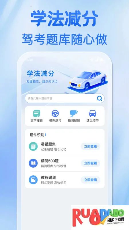 4. 可在扣分记录添加页面手动上传扣分信息,还能免费查询,详解交规知识。