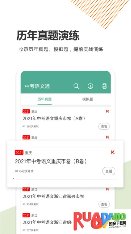 2. 收录历年中考试卷、作文指导等资料,匹配最新中考考纲,精选高频真题和模拟考题。