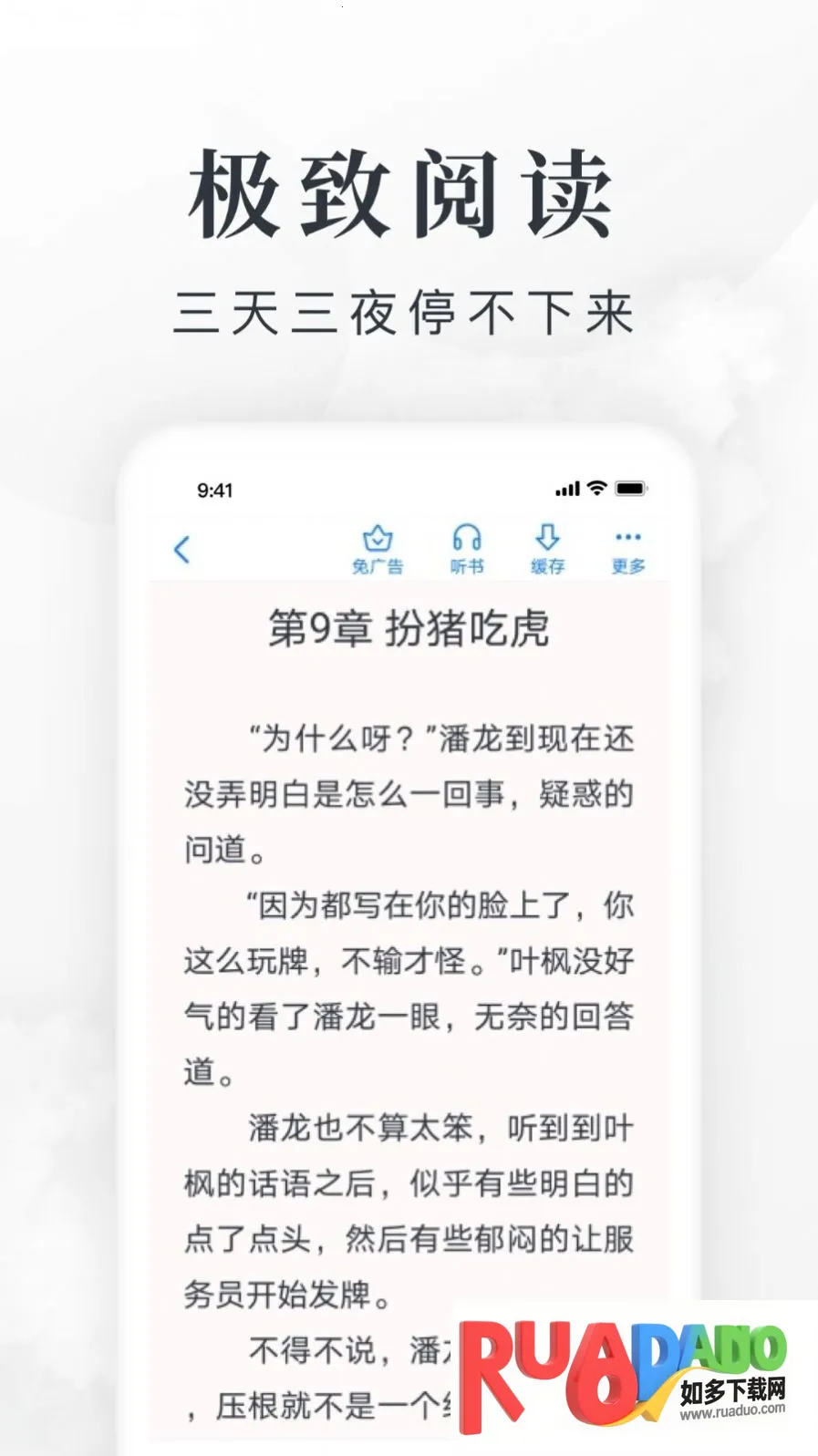 2. 阅读舒适:多种阅读主题、夜间模式、翻页效果等随意切换,横竖屏皆可。