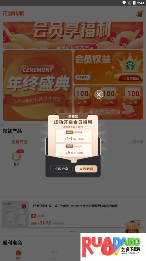 元梦特惠是购物优惠平台,能提供多样商品,让用户及时了解各类购物优惠,有专业购物功能,福利券多,购物方便,能带来优质体验,买到性价比高的商品,服务不错,值得选择。