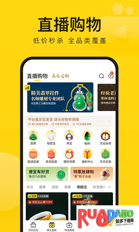 1. 天天鉴宝涵盖十大品类,百万好物,翡翠玉石、紫砂陶瓷等应有尽有,任你挑选。