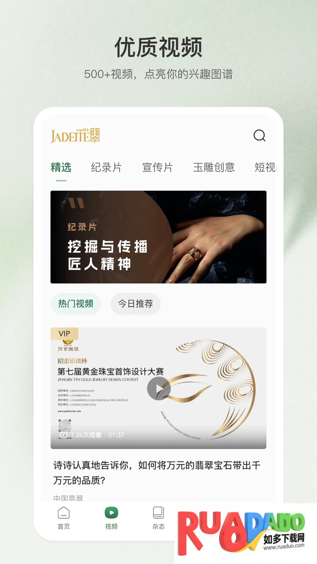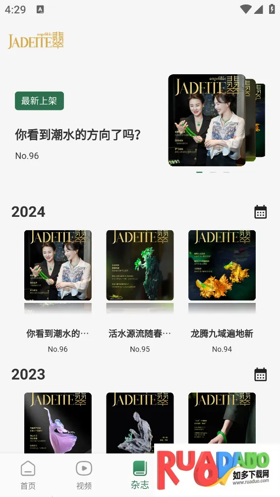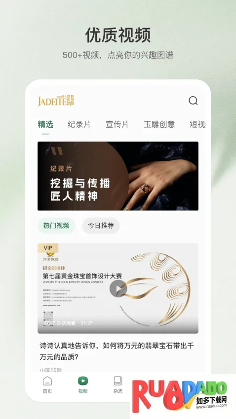 翡翠杂志app是专注翡翠珠宝类的电子刊软件,有大量相关杂志可随时阅览,更新推荐新刊。提供知识课程,打造社交圈。还有精选文章、前沿资讯等特色,能让用户掌握专业知识,了解行业动态,欣赏高清翡翠图。