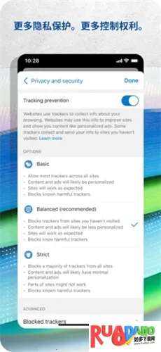 3、能防止追踪器追踪未访问网站,保护设备安全,默认启用隐私浏览模式防隐私泄露。