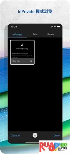 微软浏览器是Microsoft推出的多平台浏览器,原名Microsoft Edge,在iPhone和安卓手机上均可流畅使用。它具有强大的全家桶互联功能,支持跨平台数据快速同步,界面简洁,搜索精准,还能保护隐私、屏蔽广告,是不错的浏览器选择。