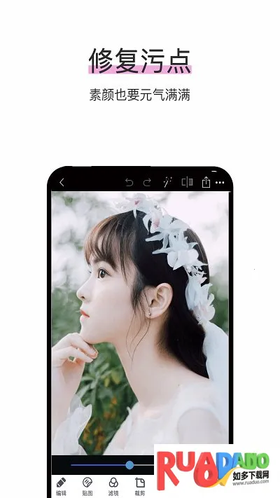 能进行照片美颜,智能瘦脸美白美拍去眼袋,展现自然美颜自拍效果。