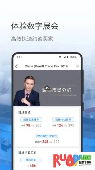 网展贸最新手机版是结合“一带一路”战略的国际展会O2O外贸服务平台。有海量商品资源,支持跨语言聊天,能线上管理、统计热度、发现商机,还提供展会管理服务,解决非展会期间供需交流难题。
