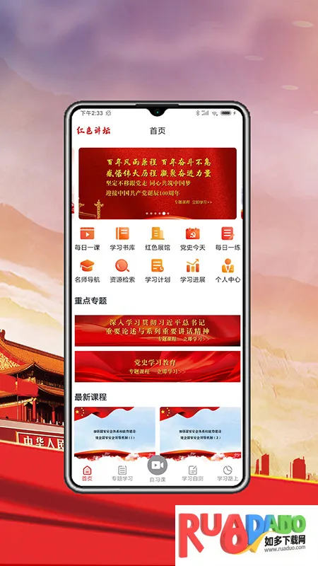 红色讲坛是专为公共服务单位人员打造的思政学习软件,以习近平新时代中国特色社会主义思想铸魂育人。有丰富课程资源、自测题,提供名师指导、学习计划等,助用户高效提升政治知识与觉悟。