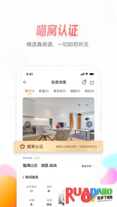 1. 认证好房,喵窝认证真实公寓房源,所见即所得。
