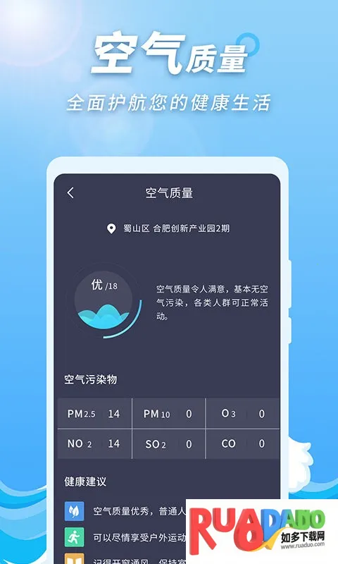 3. 天气数据详细,除温度外,可查看空气质量、风力等,且非常准确,能安全参考。