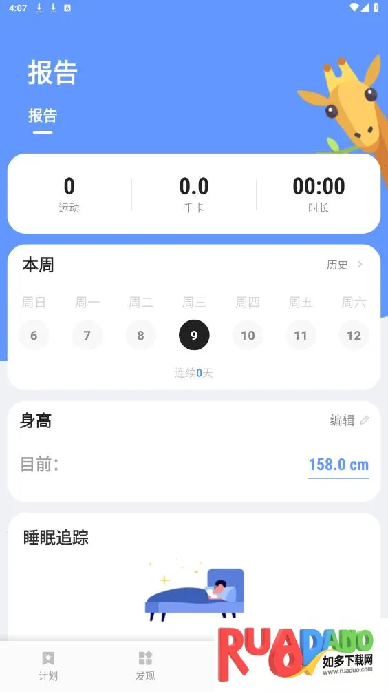 4. 可设置目标睡眠时间,记录每日睡眠并在图表查看,辅助增高。