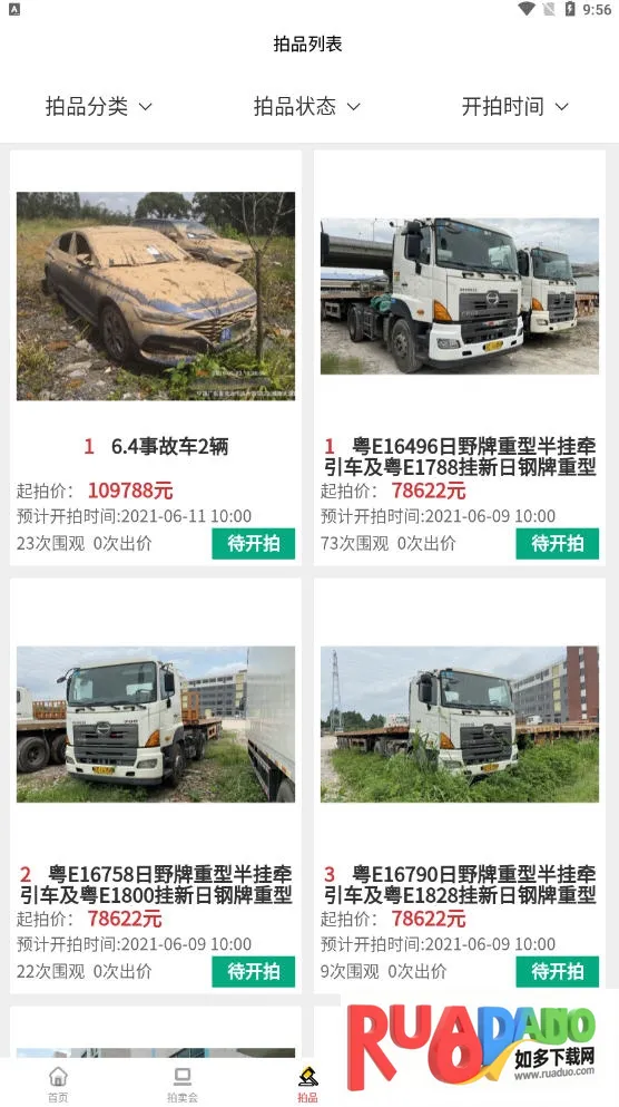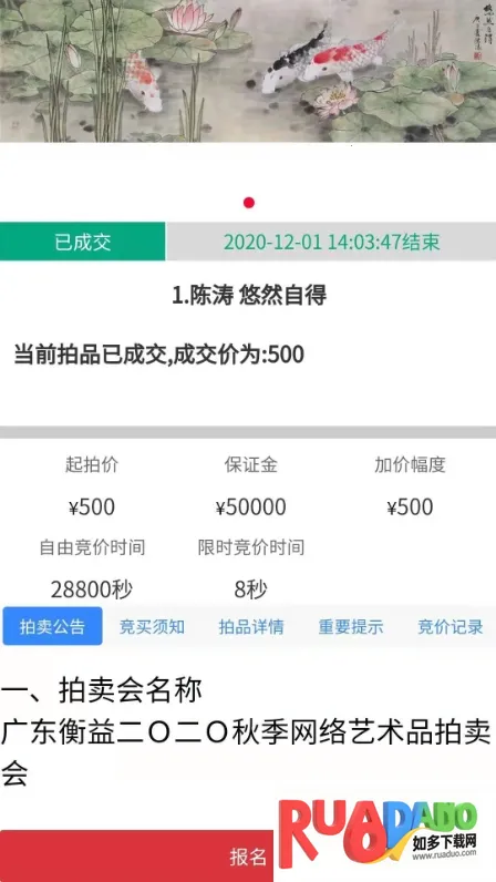 4. 平台会自动记录用户参加过的拍卖活动信息,方便快速查看不同拍卖活动数据,成功报名后还能准时获得拍卖提醒。