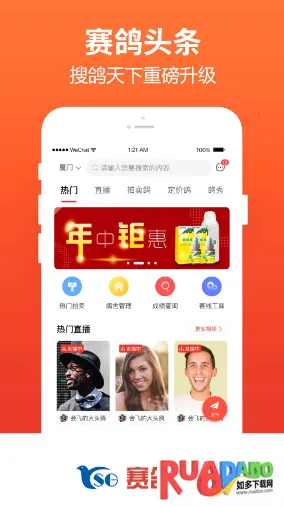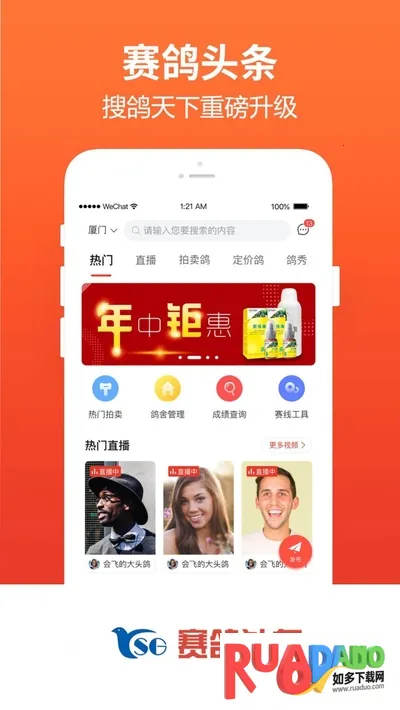 赛鸽头条搜鸽天下是集信鸽交易、商城、公棚协会、资讯成绩查询、拍卖等多功能于一体的赛鸽综合平台。提供鸽药商城、论坛交流等服务,资讯实时更新,还有直播拍鸽等特色,是爱鸽者的赛鸽助手。