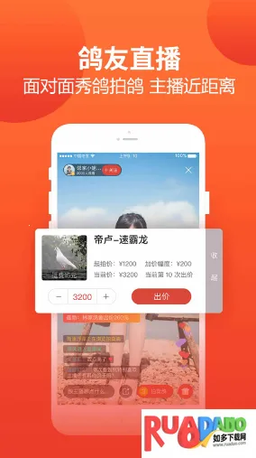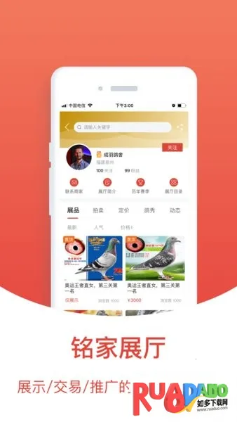 4. 线上拍鸽有定价鸽和拍卖鸽两个板块,能直观选种鸽,养鸽成功一半。
