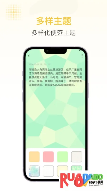 随易记是广州景唐科技打造的笔记记录软件,界面简洁直观。能便捷记录日常、会议等,创建笔记和待办任务简单,还有丰富功能如标签管理、多浏览模式等,满足不同人群需求,方便管理日程与内容。