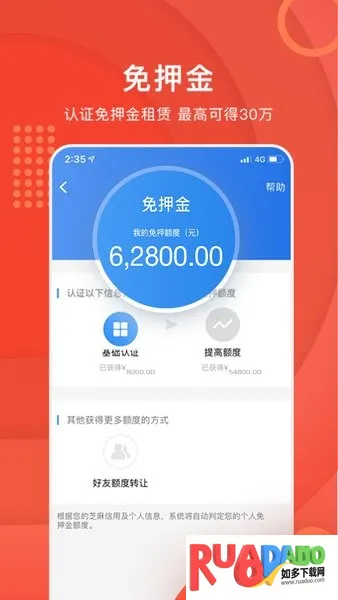 2、与芝麻信用合作,通过芝麻信用分可获押金减免服务。