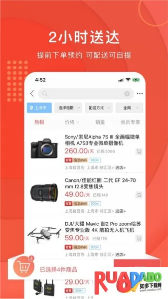 2. 设备种类丰富,涵盖单反相机镜头、摄像机、航拍无人机等。