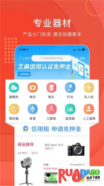 3. 与芝麻信用合作,可免押金租赁,降低作品制作成本,让更多人体验拍摄乐趣。