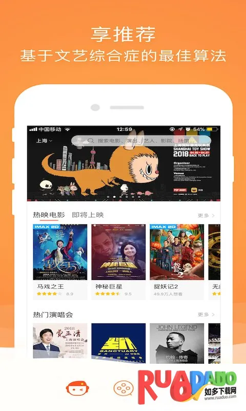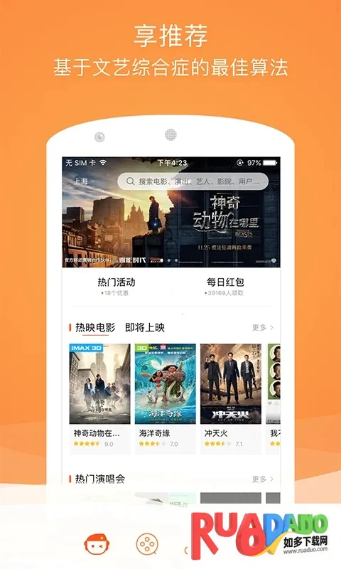 1. 提供一站式购票服务,涵盖电影、演唱会、话剧等多种类型。