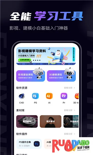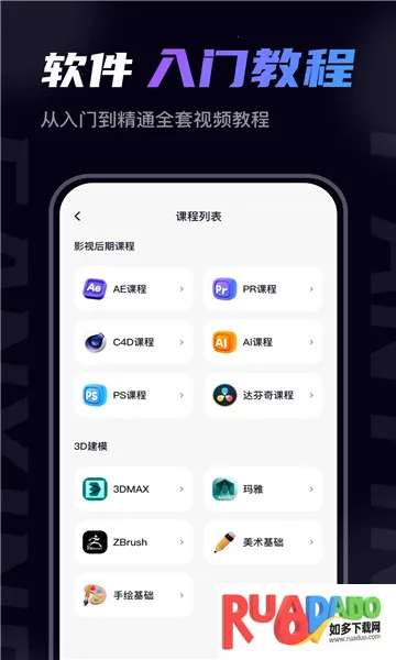 1. 提供从零开始的系统教程,围绕主流软件,按学习路径逐级解锁视频课程,避免碎片化学习。