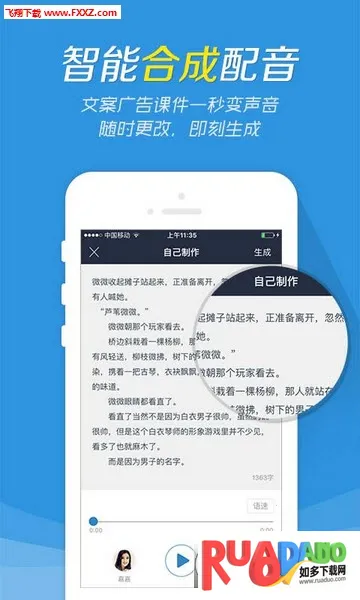 配音阁是一款专业配音软件,搭载科大讯飞AI语音技术,多种声音可选,支持真人录制。操作简单,合成快,文案丰富,音质优,适用于多种场景,还能导出,提供完善服务。