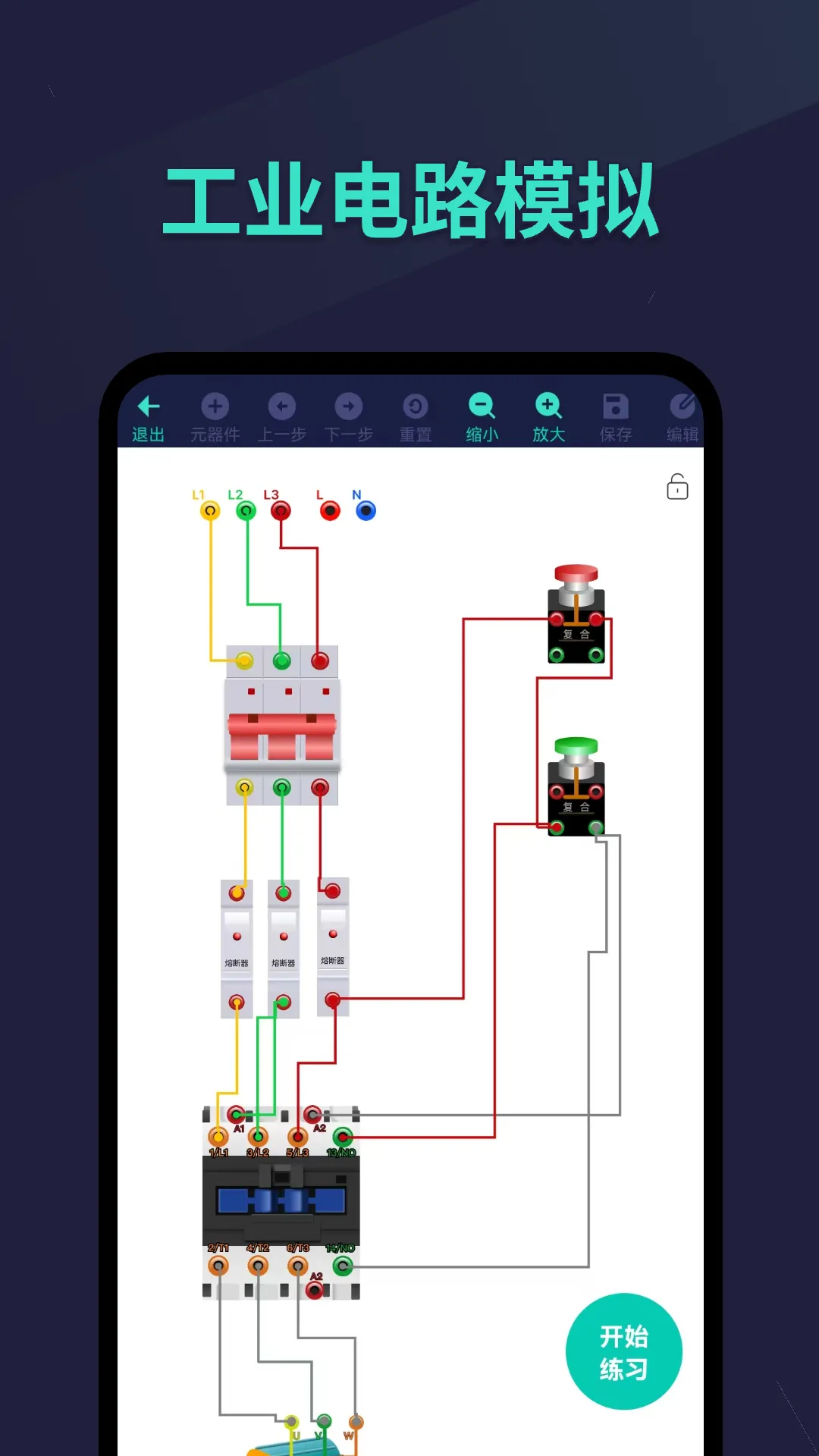 2. 支持工业、家庭、常用电路仿真模拟接线,提供丰富练习场景。