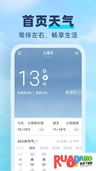 常伴天气是广州繁山网络科技有限公司打造的生活天气工具,提供及时精准全面气象信息。有多元化数据、实时更新、个性化定制等特色,能切换城市,可查多地天气及40日预测,满足多样需求。